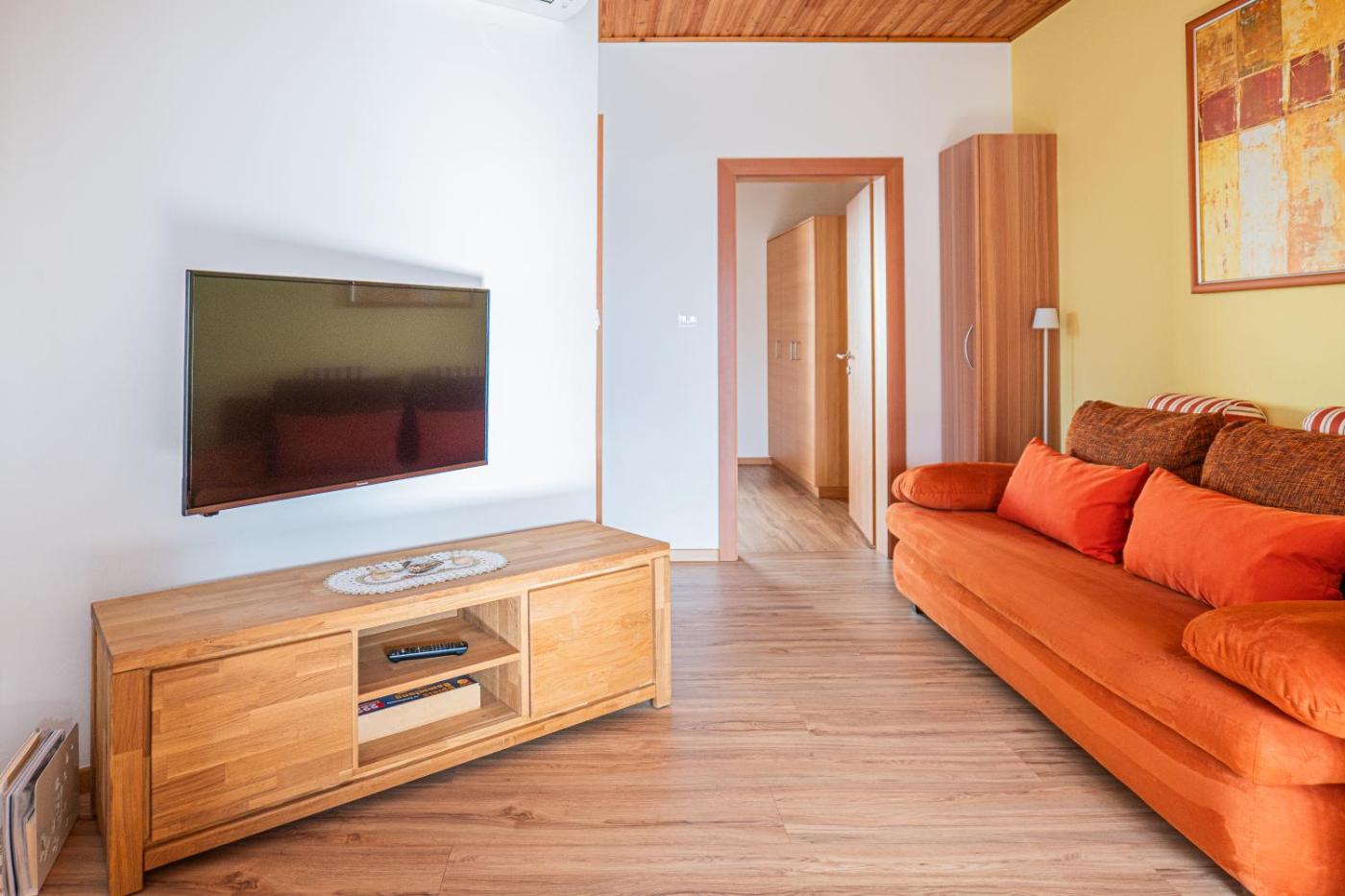 Two-Bedroom Apartment. Boasting a private entrance, this air-conditioned apartment features 1 living room, 2 separate bedrooms and 1 bathroom with a shower and a bidet. In the kitchen, guests will find a stovetop, a refrigerator, a dishwasher and kitchenware. This apartment has a washing machine, flat-screen TV with satellite channels, mountain views, as well as fruit for guests. The unit has 4 beds.